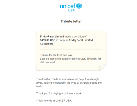 Donations of USD$459 in September, 2022 | FridayParts Global Care Program